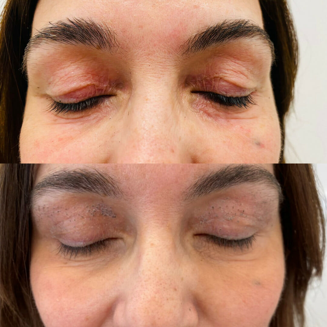 - Po tretmaju ostanejo drobne pikice, ki jih lahko čez nekaj dni prekrijete s pudrom. Krastice spontano odpadejo, koža po tem je videti sveža in zategnjena.